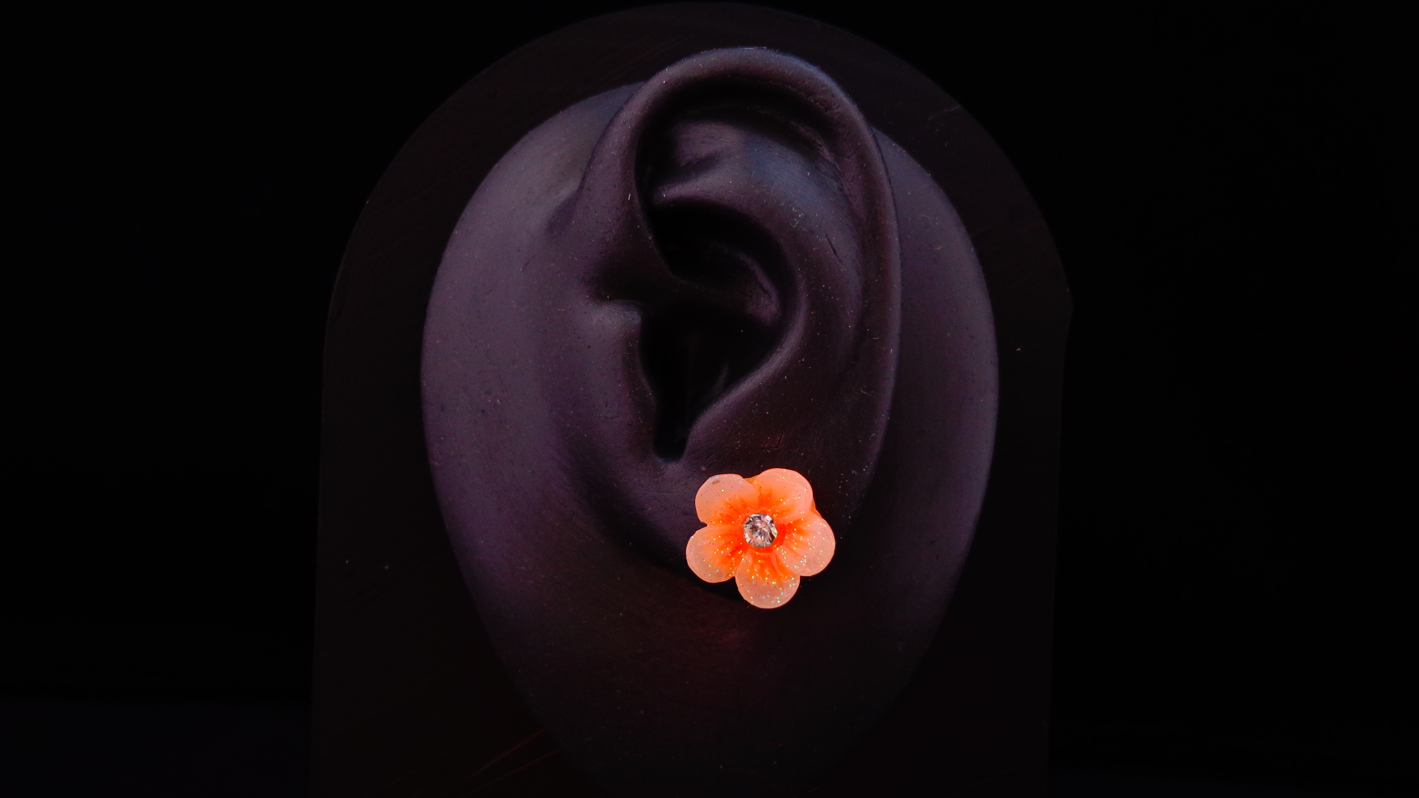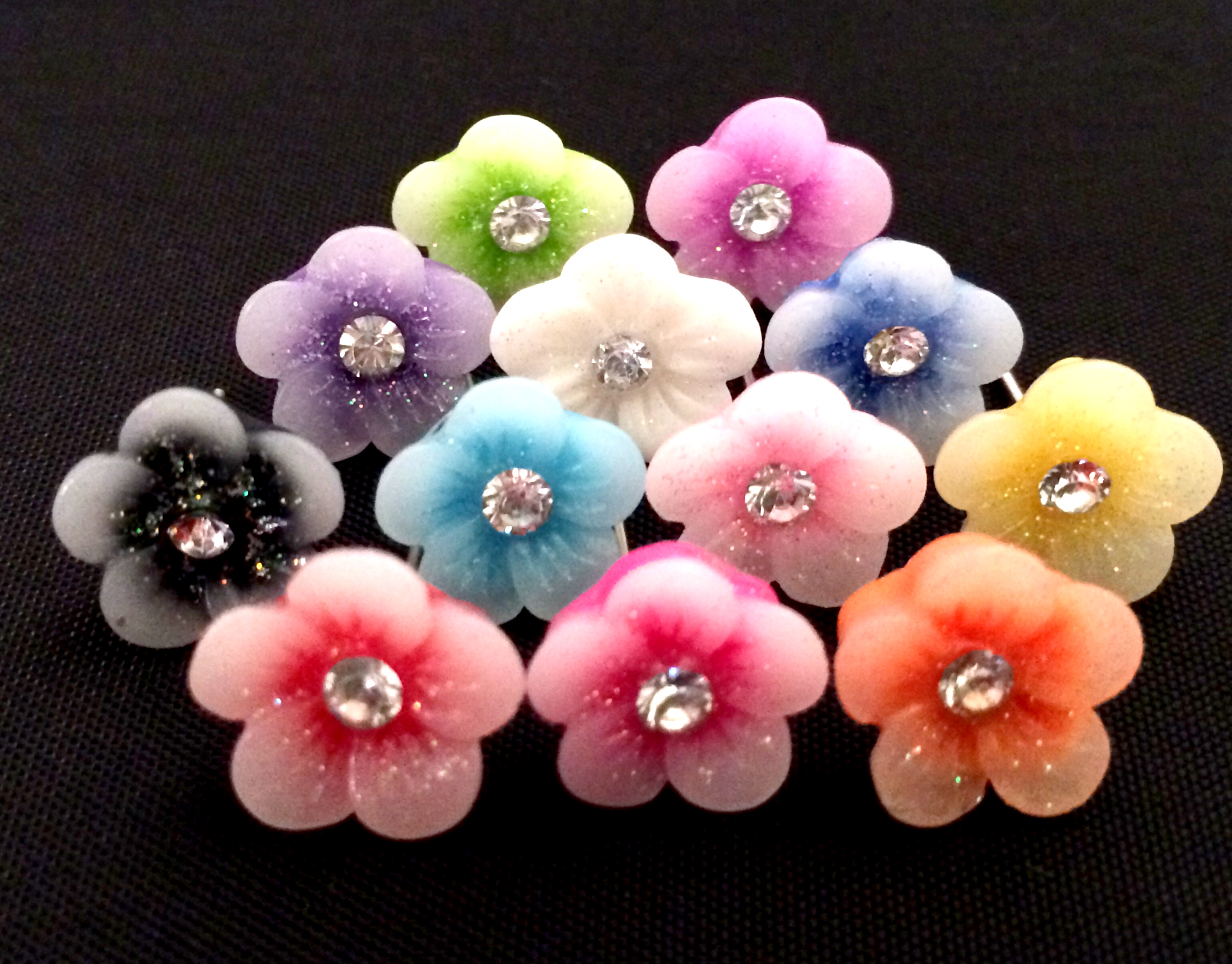 Adorable flower studs that fade from white to different colors. Dusted with glitter. Choose your color in the options.