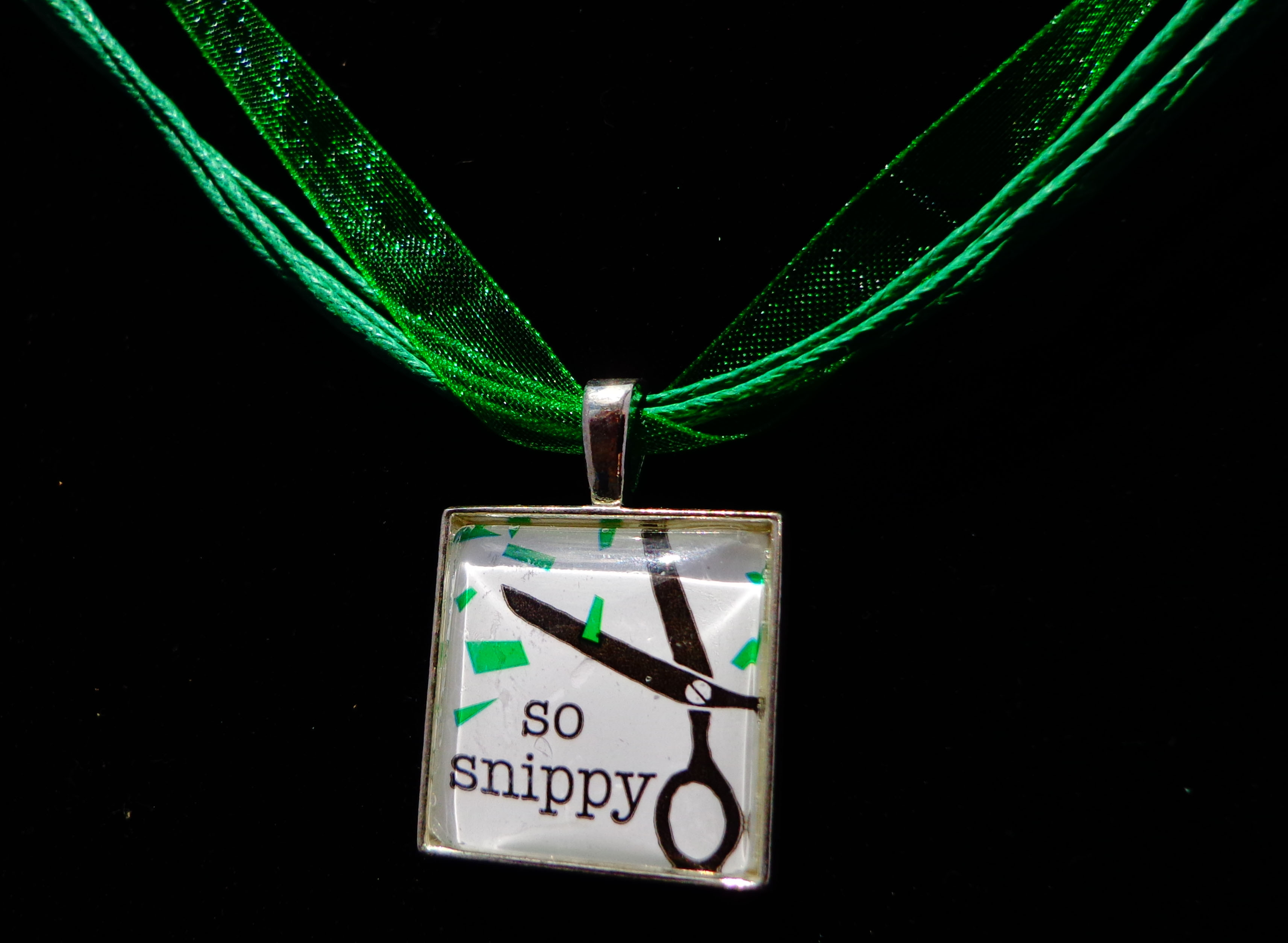 - 1 inch silver tile. - Green ribbon cord is adjustable from 17-19".