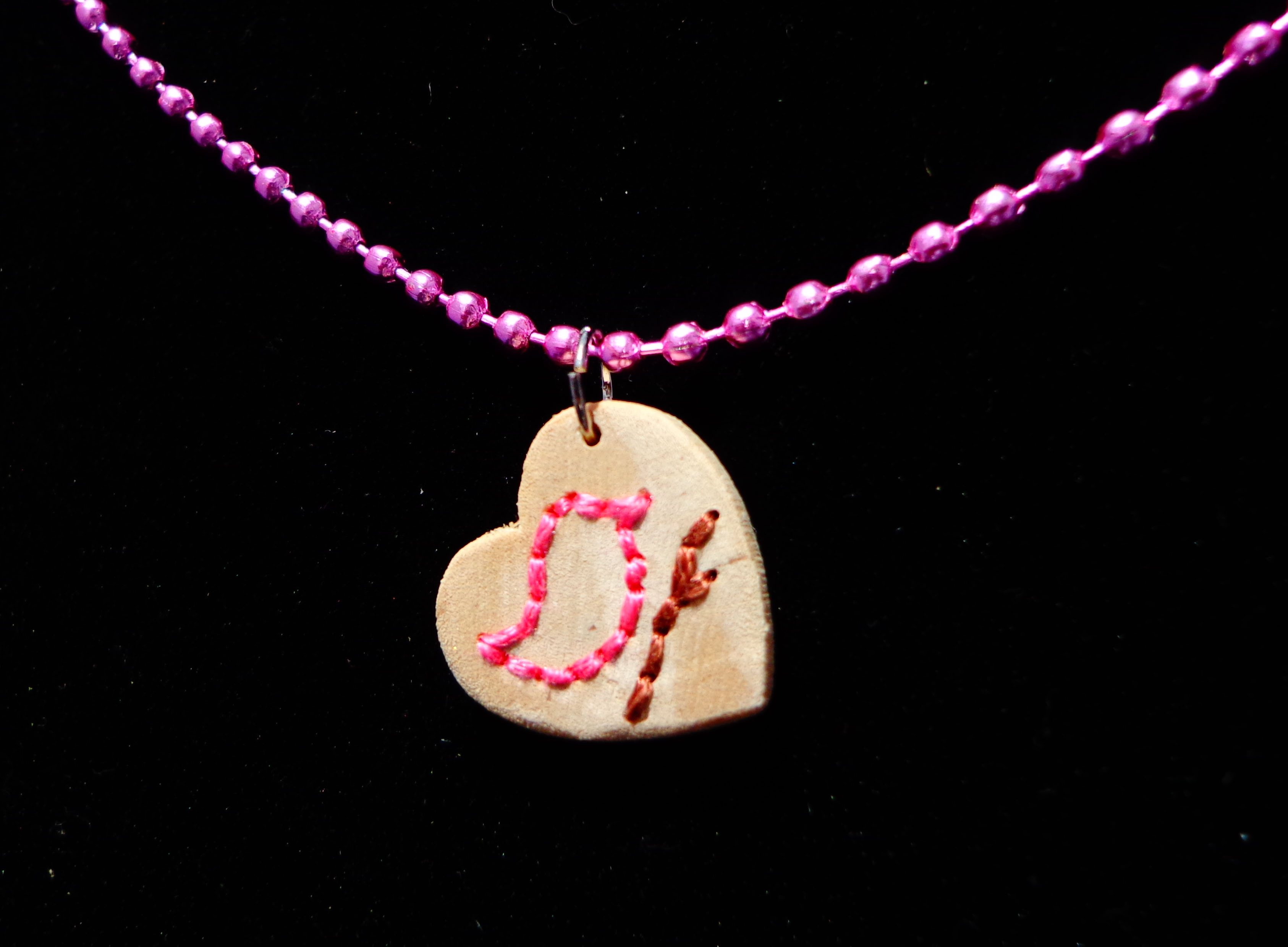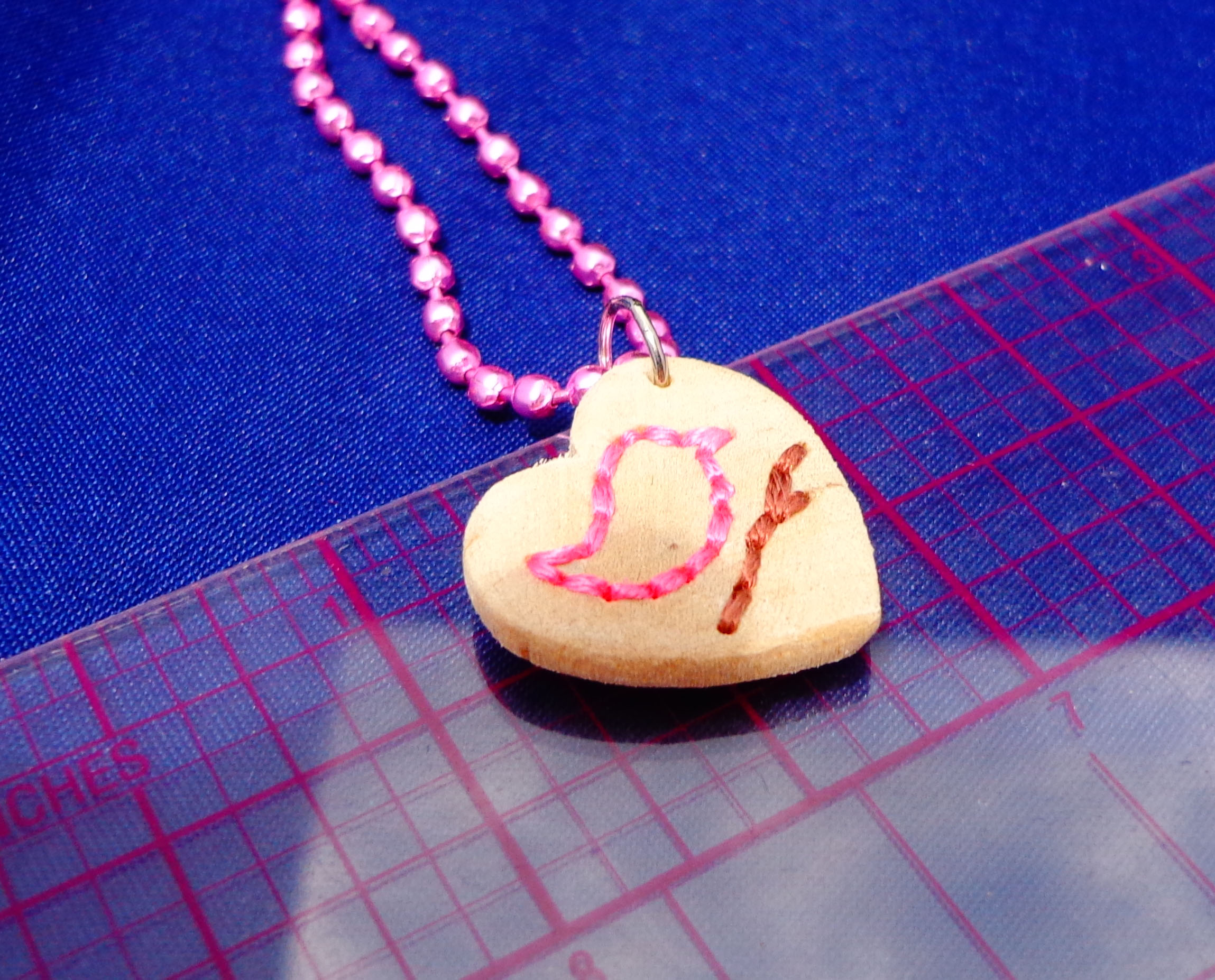 Hand embroidered wooden tile w/ a lil pink birdie. I sand, dremel and embroidered this myself.